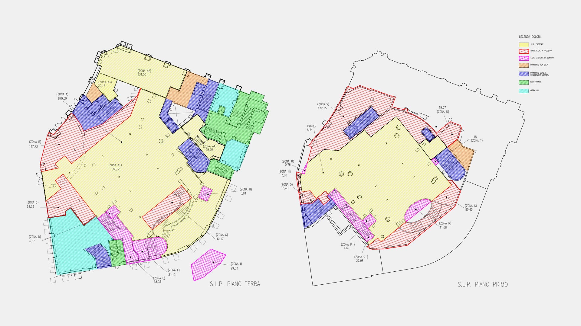 Lo Studio Ferraresi, nella persona di Angelo Ferraresi, ha seguito a vari livelli l’intervento, che si è rivelato di grande impegno e complessità soprattutto per la parte preliminare e amministrativa. L’ex multisala si trovava infatti al centro di un complesso abitativo suddiviso tra molte proprietà, per il quale era richiesto inoltre un cambio di destinazione d’uso (da spettacolo a commercio e ristorazione) che interferiva con i vari vincoli a cui era soggetta la Galleria del Corso. Le lunghe e delicate trattative con il Comune hanno comportato un iter articolato che ha richiesto il coinvolgimento di un team legale specializzato per riscrivere le convenzioni tra il Comune e i proprietari della secolare galleria, mediando con le esigenze degli altri frontisti.