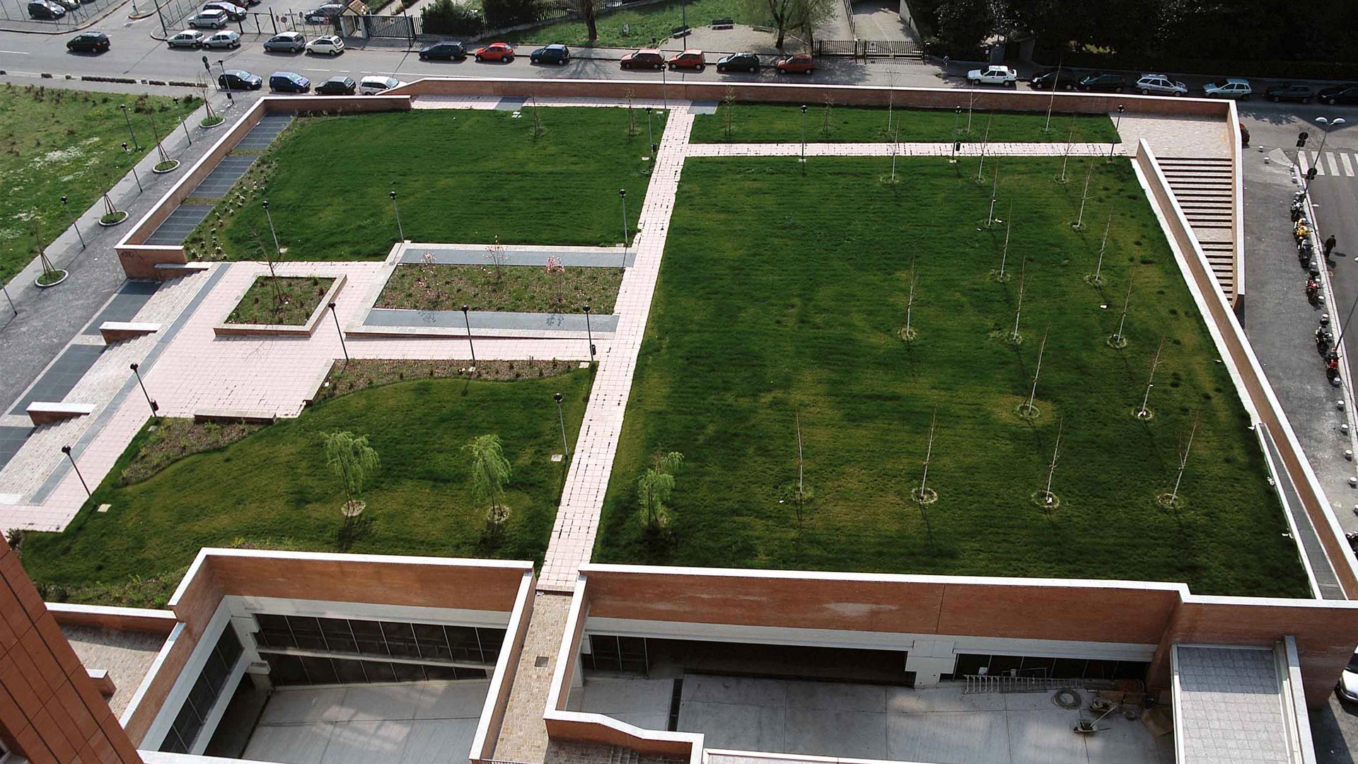 La definizione urbanistica e architettonica dell’area, in attuazione del Piano Particolareggiato del 1991, ha impegnato per quasi un decennio lo Studio Ferraresi su più fronti: project management, progettazione integrata, coordinamento dei cantieri e direzione lavori delle aree di superficie, dei sistemi di connessione, delle infrastrutture veicolari e dei due edifici direzionali Romolo e Romolino.