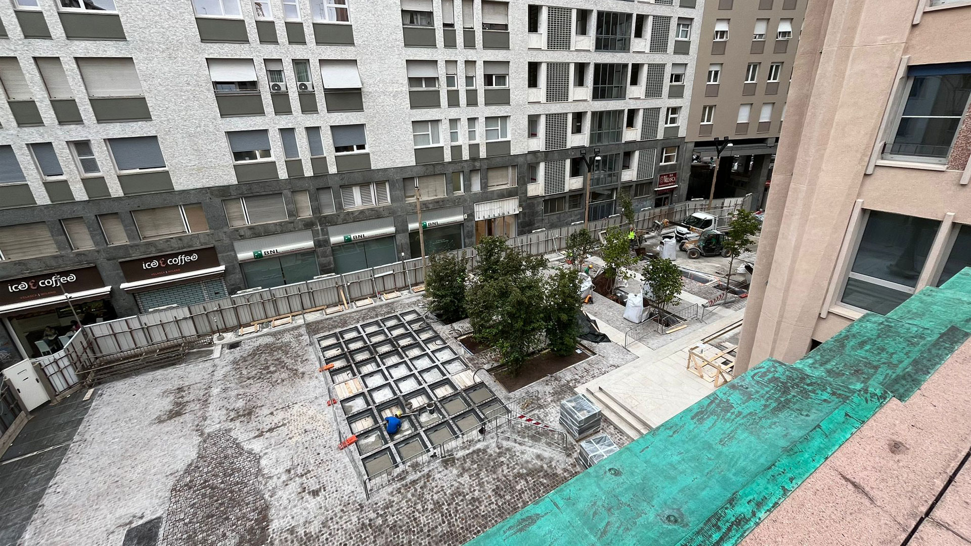 La riqualificazione si è estesa infine alla piazza circostante la torre, pensata già in origine come uno spazio ad alta vivibilità e completamente ridisegnata in funzione pedonale, con aree verdi e di socializzazione che rendono la nuova Torre Velasca una meta attraente a scala urbana. Con la piazza e l’ingresso di nuove attività commerciali la torre è rinata come un organismo vivo, dinamico e pulsante aperto alla città.